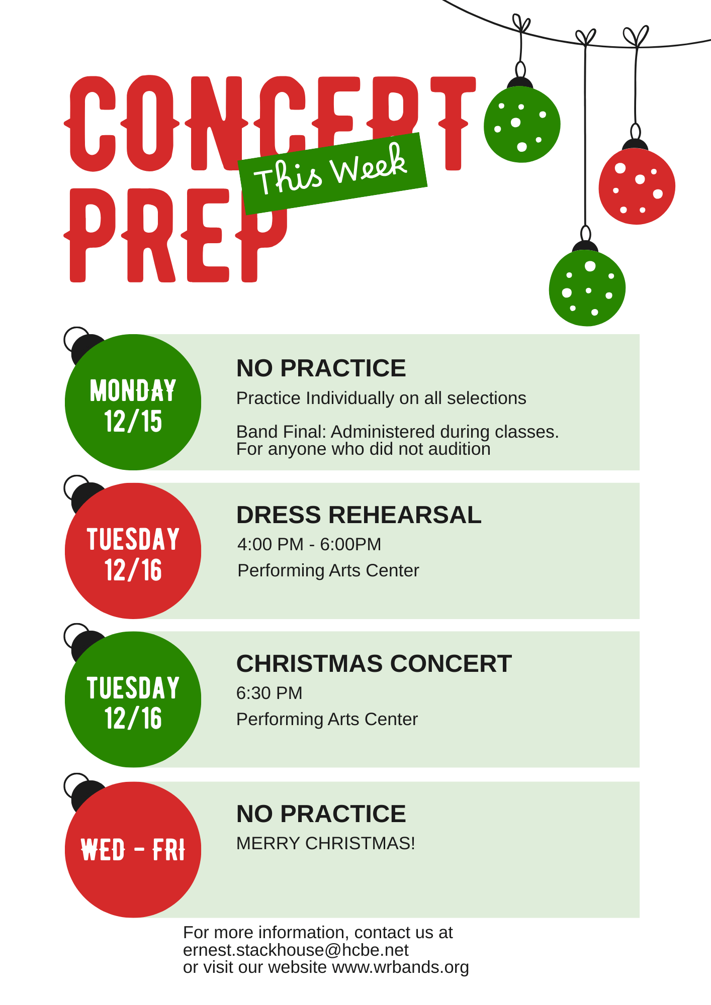 THIS WEEK: Concert Prep Posted byThe EditorDecember 14, 2025Posted inNews & Events Share this: Share on Facebook (Opens in new window) Facebook Share on X (Opens in new window) X Email a link to a friend (Opens in new window) Email Share on LinkedIn (Opens in new window) LinkedIn Share on Pinterest (Opens in new window) Pinterest Print (Opens in new window) Print Like Loading... Related Published by The Editor -Fine Arts Program Administrator -Band Director -Adjudicator -Arranger -Writer View more posts