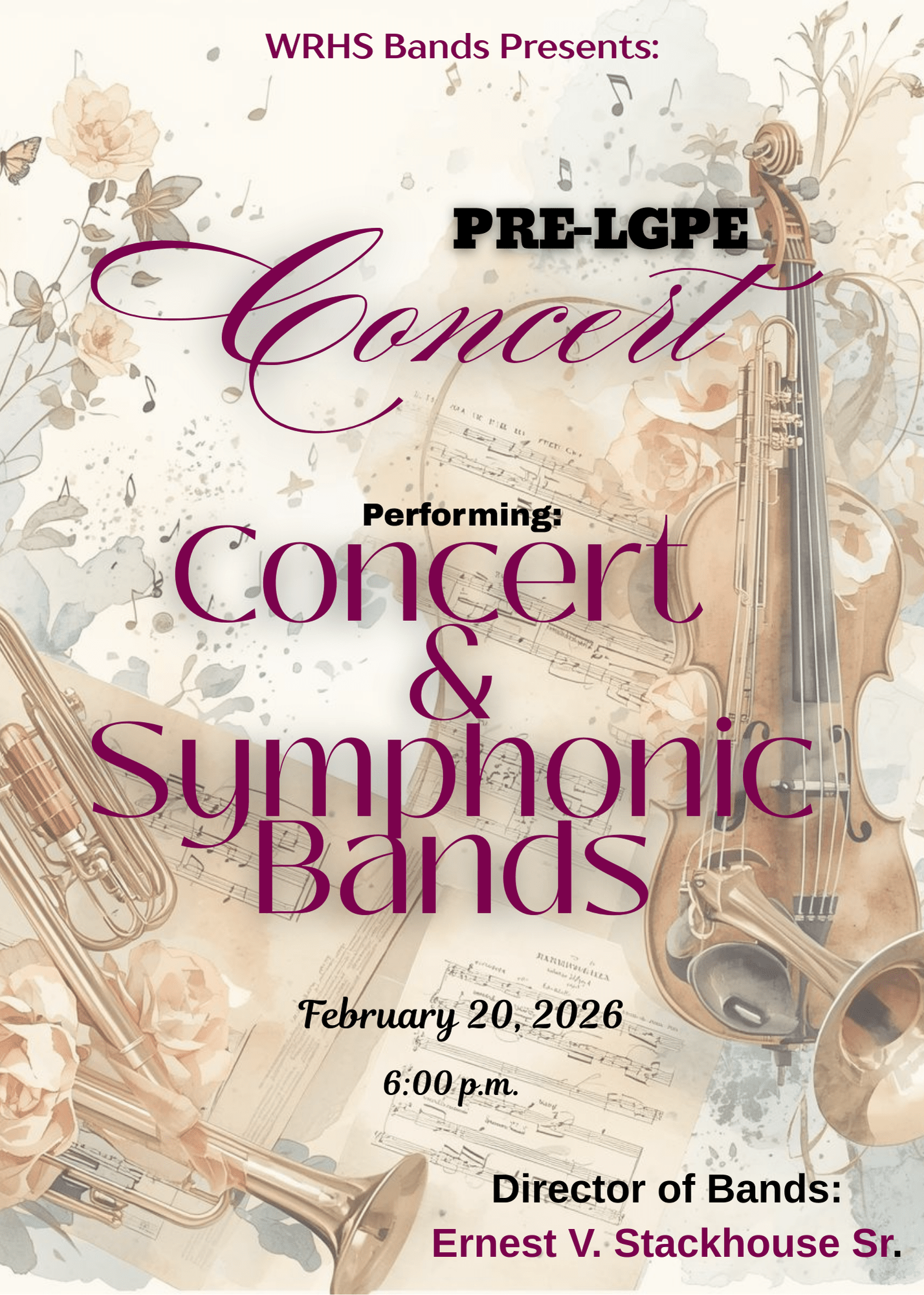 PRE LGPE CONCERT Posted byThe EditorFebruary 19, 2026February 19, 2026Posted inNews & Events Share this: Share on Facebook (Opens in new window) Facebook Share on X (Opens in new window) X Email a link to a friend (Opens in new window) Email Share on LinkedIn (Opens in new window) LinkedIn Share on Pinterest (Opens in new window) Pinterest Print (Opens in new window) Print Like Loading... Related Published by The Editor -Fine Arts Program Administrator -Band Director -Adjudicator -Arranger -Writer View more posts