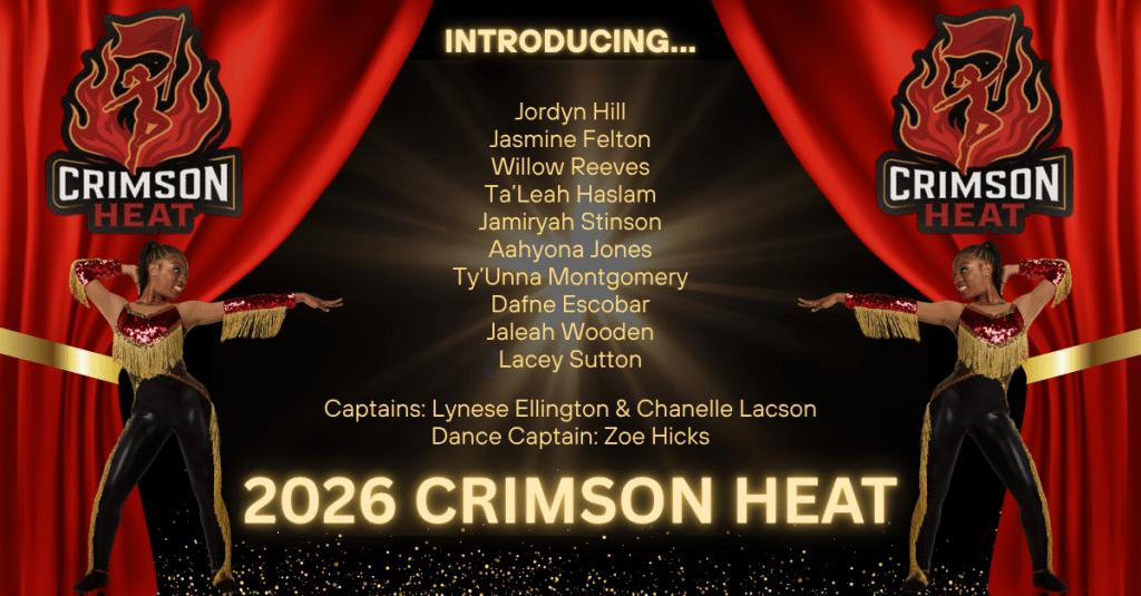 This week, our talented auxiliary unit, Crimson Heat, held tryouts for the upcoming season! Candidates showcased their skills by twirling flags through exciting routines while also demonstrating dance technique and learning choreography. We are proud of every student who stepped forward and gave their best effort. Congratulations to all of the selected candidates, we can’t wait to see Crimson Heat shine on the field and in the stands this year!