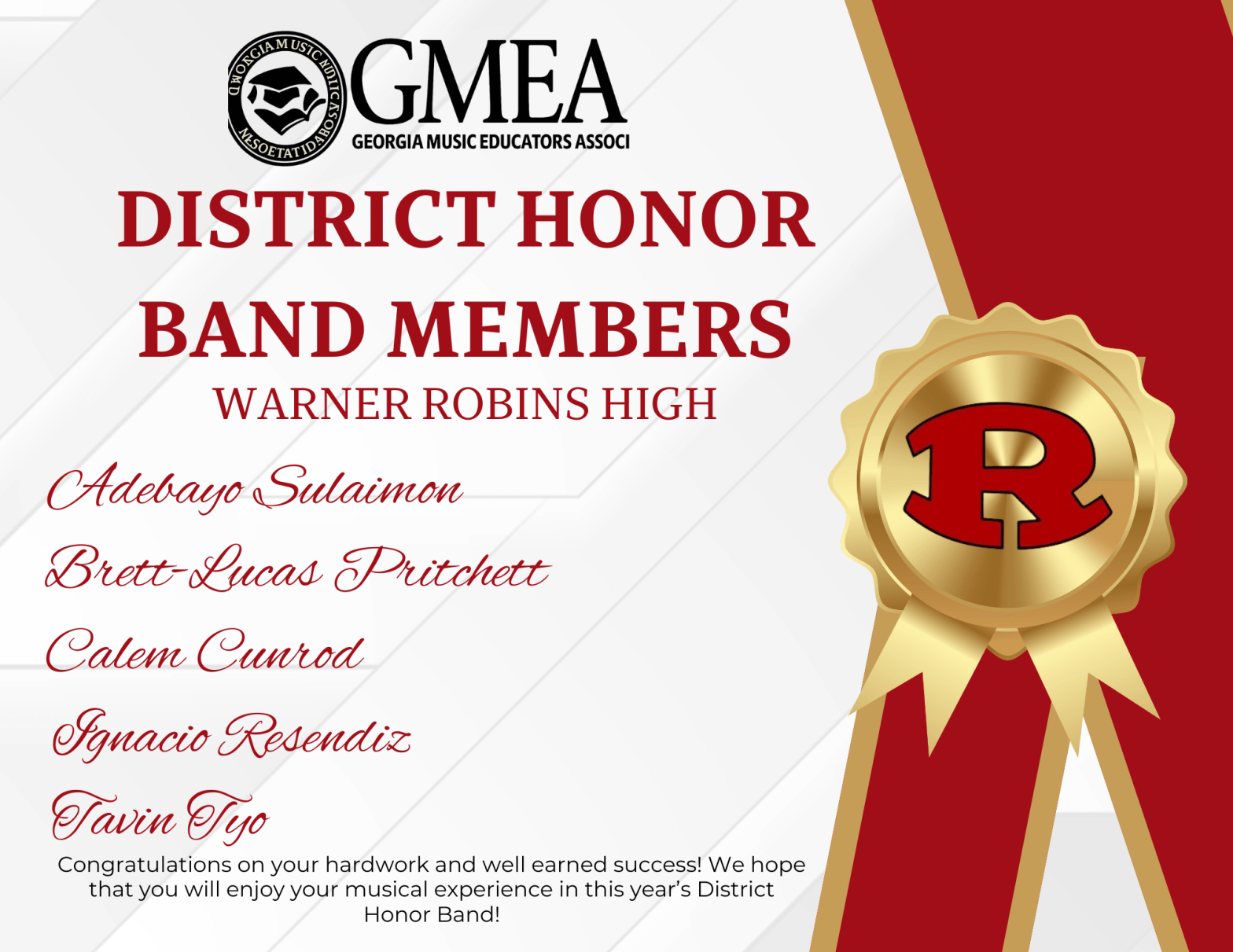 District Honor Band Share this: Share on Facebook (Opens in new window) Facebook Share on X (Opens in new window) X Email a link to a friend (Opens in new window) Email Share on LinkedIn (Opens in new window) LinkedIn Share on Pinterest (Opens in new window) Pinterest Print (Opens in new window) Print Like Loading...